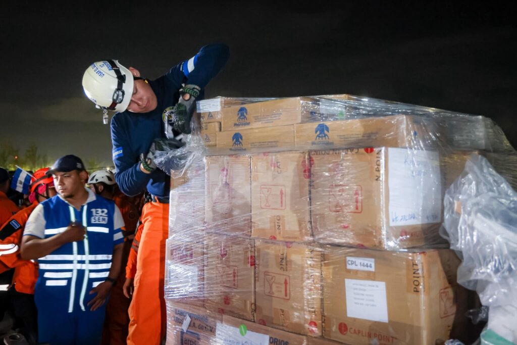 Desde su llegada, el equipo de instituciones salvadoreñas ha trabajado en la organización y clasificación de los insumos enviados, con el propósito de garantizar una entrega eficiente y ordenada a las comunidades afectadas.